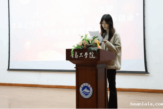 随后,主持人宣读获奖名单,“青铜器一字创新创业”一等奖获得者、设计艺术与传媒学院的高蕊同学代表参赛学生发言。