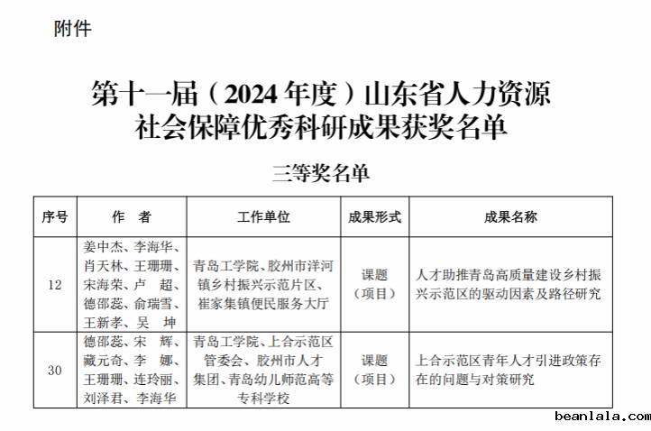 近日,山东省人力资源和社会保障厅公布了第十一届(2024年度)山东省人力资源社会保障优秀科研成果评选结果,世界杯平台喜获课题(项目)类三等奖2项,标志着学校在人力资源社会保障与地方发展融合研究领域取得重要突破,为区域高质量发展提供智力支撑的能力得到省级权威认可。