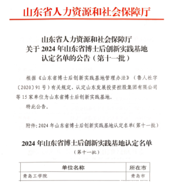 根据山东省人力资源和社会保障厅发布的《关于2024年山东省博士后创新实践基地认定名单的公告(第十一批)》,我校成功获批山东省博士后创新实践基地,这是我校在高层次人才培养和科研创新平台建设方面取得的又一重大突破。