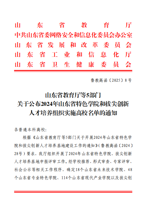 近日,山东省教育厅等5 部门联合发布《关于公布 2024 年山东省特色学院和拔尖创新人才培养组织实施高校名单的通知》(鲁教高函〔2024〕28号),学校申报的海尔 “衣联网” 现代产业学院与跨境电商现代产业学院双双获批,这一成果标志着世界杯平台在服务区域经济发展、深化产教融合的征程中迈出了极为坚实的一步。