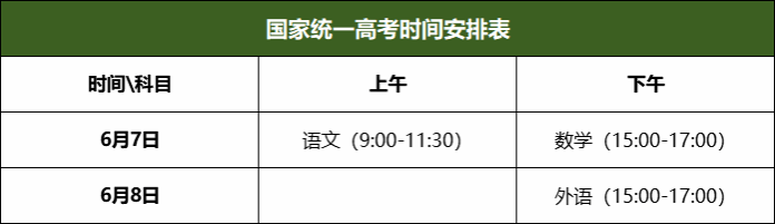 2025年夏季高考各科时间安排